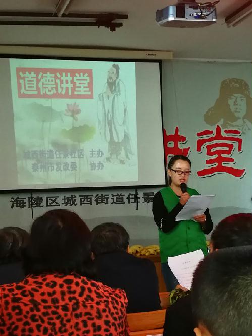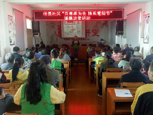 为深化文明城市创建,践行社会主义核心价值观,传承中华美德,10月28日上午,在重阳节来临之际,市发改委在任景社区组织辖区失独家庭老人、青少年之家学员和家长等开展以“百善孝为先? 情系重阳节”老少同乐为主题的道德讲堂活动。 此次活动的内容主要包括:作反省、唱歌曲、看短片、诵经典、讲故事、谈感悟、送吉祥七个环节。把传统节日融入道德讲堂。社区青少年之家志愿者谢玲、赵如瑶作为本期道德宣讲员为大家讲身边的人和事来褒扬和激励身边的孝老爱老道德典型,让大家感受到社区大家庭的温暖和谐。活动最后志愿者们为大家送上重阳糕点,并为他们送上节日祝福。 在“重阳节”到来之际,通过道德讲堂形式,让老年居民深刻体会到社区对老年人的关怀,让年轻朋友体会到要尊老敬老。今后我委将会同共建社区把道德讲堂活动延续下去,开展“尊老敬老”系列活动,在实践活动中推进公民思想道德建设,促进社会和谐发展。